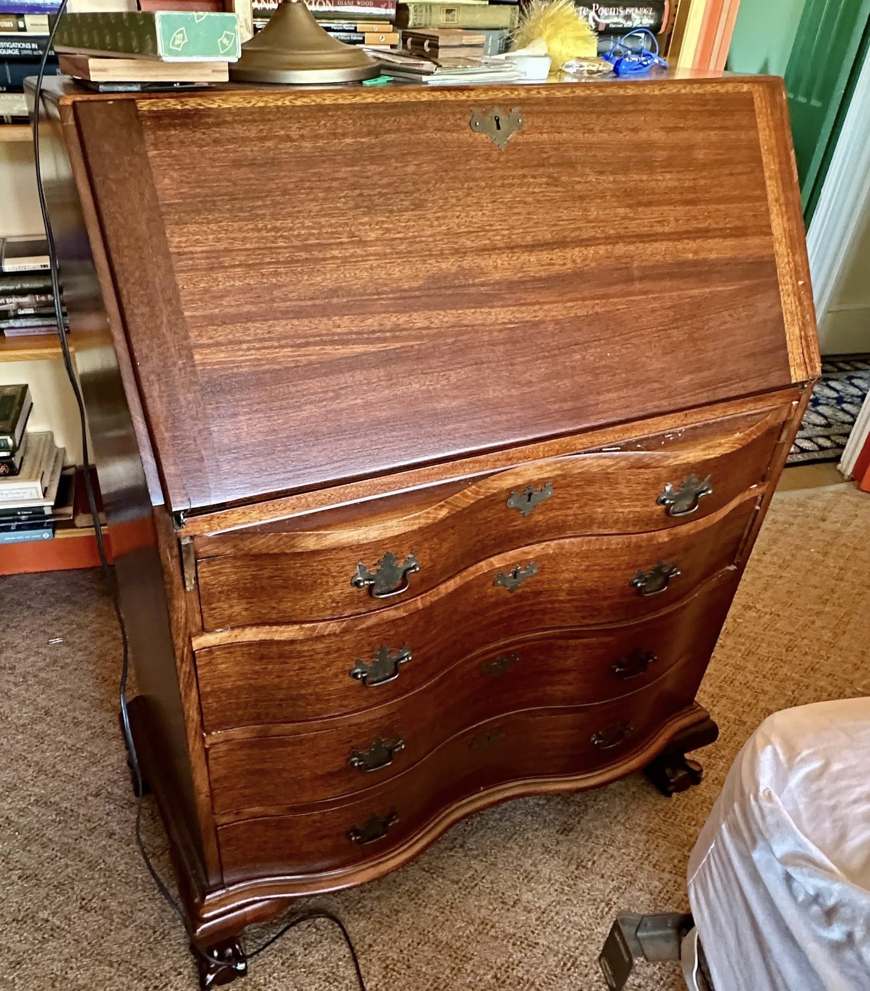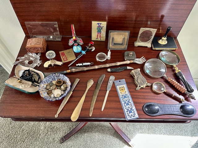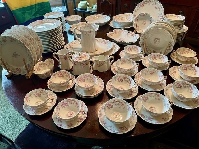 *Some Highlights of the Auction include: Incredible Vincenti et Cie Crystal Regulator clock w/ Rhinestone embellishment and enameled Porcelain Face, Antique Parian Bisque Bust of Apollo Belvedere, Royal Bonn Porcelain Case Clock, Spectacular Hoare 18″ Cut Glass vase as well as Hawkes and other cut glass articles, HUGE set (109 pcs) Haviland Limoges China Dinnerware, Extra Large Royal Bonn Porcelain Basket, Collection Japanese Art & Decor items, Antique Mandolin, 19th Century Ebony Flute & Piccolo, Stickley Mission Oak Bed and Night Stand (Modern), Mission Oak Reclining Morris chair, Antique Carved Oak Court Cupboard, Scarce Antique Oak Danner Stacking (Barrister) Bookcase, Massive French Carved Marble Top Dresser & Mirror, Carved Marble Pedestal, Carved Agate Pedestal,Large Antique German Bisque Sleigh With Children (as is), Sterling Silver articles Including: Watson Demitasse Set, Gorham Champagne Bottle Holders, Candlesticks, compote,serving pieces and more, 14K Yellow Gold Longines men’s Art Deco Wrist watch, THOUSANDS of Books ranging from 19th Century to 21st century covering every topic imaginable (Literature, Poetry, Theater, Horror, Gardening, Yoga, Local Oswego interest, etc), Vintage men’s Clothing w/Formal wear incl: Several Full length capes, Carved Victorian Chairs, Curved Glass Oak China Cabinet, Antique S Hart Crock w/blue Bird, Early 2 gallon Stoneware Churn w/ Blue Decor, Exception collection “Famous Monsters of Filmland” Magazines c1970s, Many Many pieces art work and decor, Cuala Press Woodblock Prints By Yeats, Mahogany Gov Winthrop Desk, And so much more! Truly and Incredible Multi generational Estate from a family steeped in the History of Oswego and a love of Literature and the Arts.
